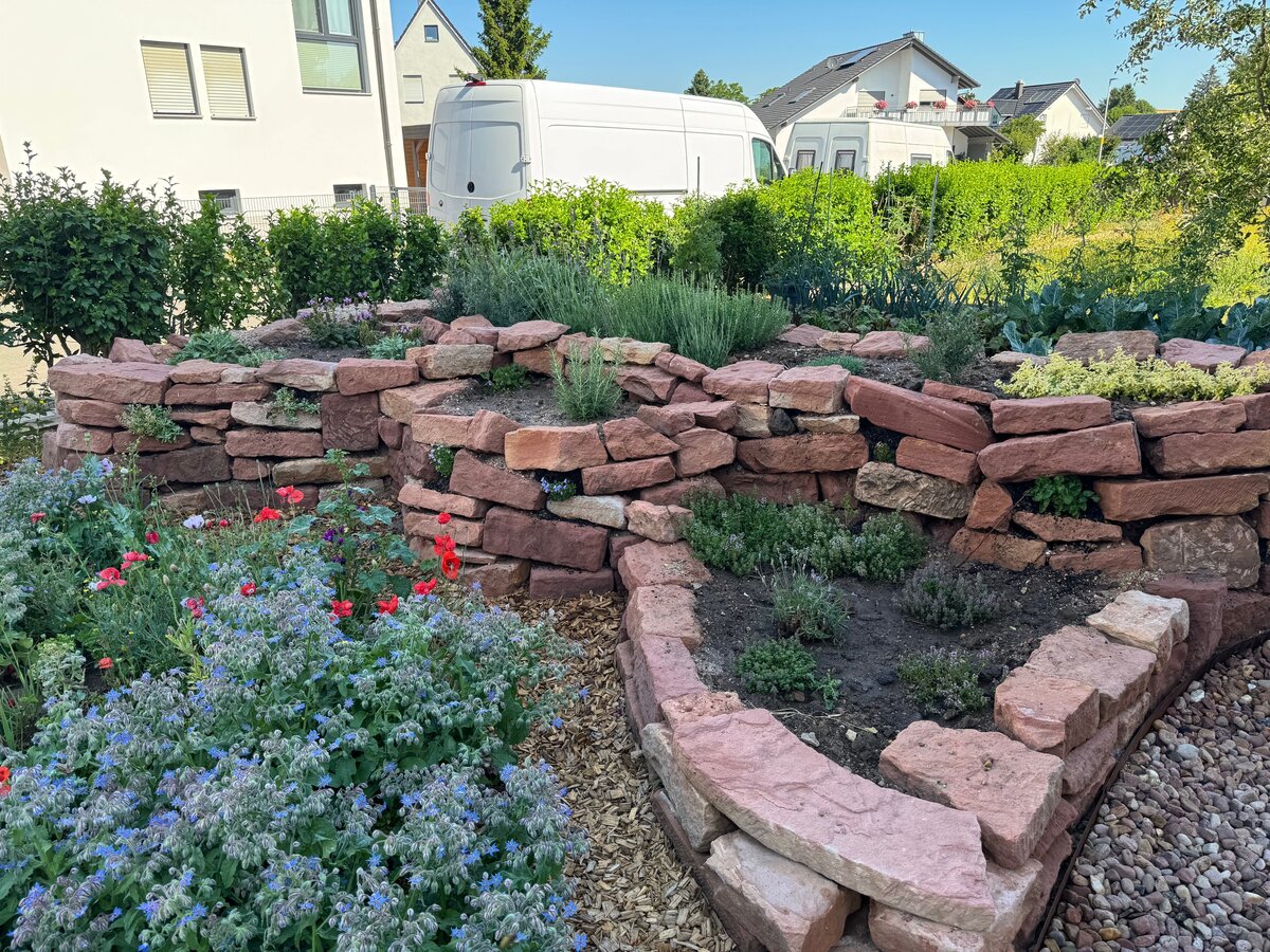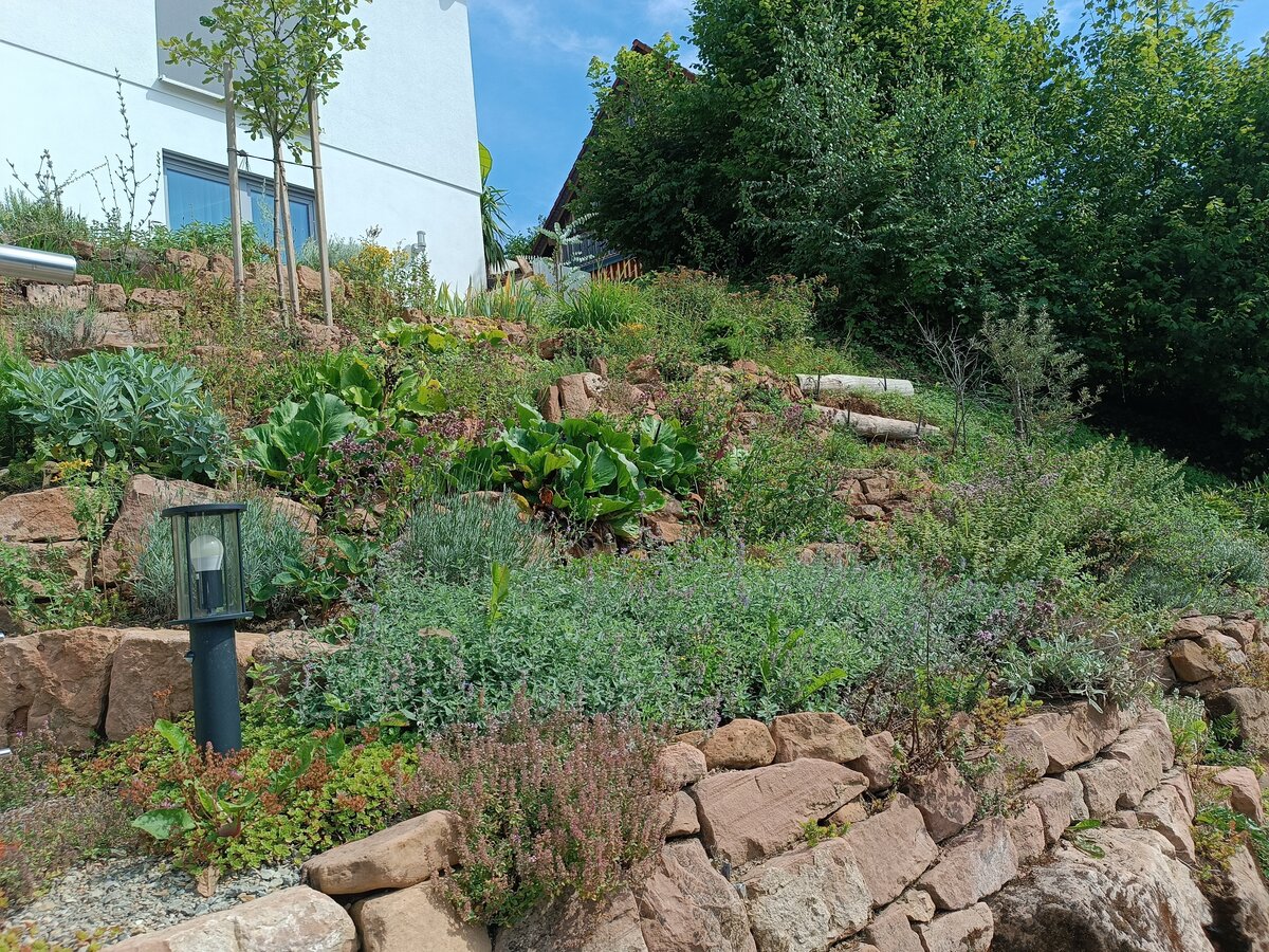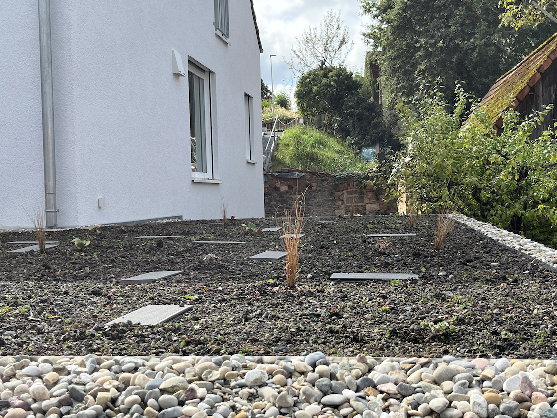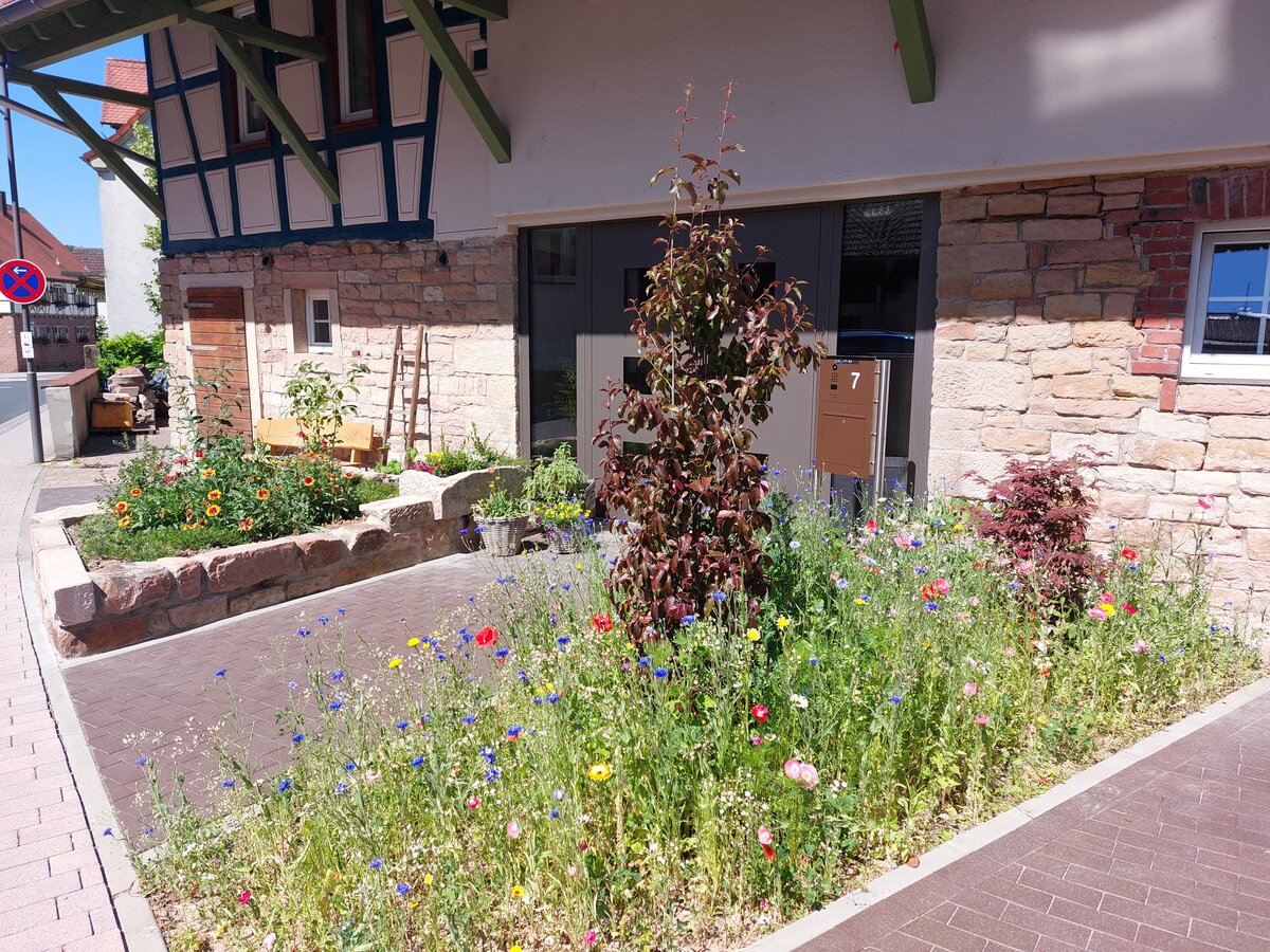 Die öffentlich einsehbare Vorgarten-Fläche muss unter Verwendung heimischer Pflanzen naturnah, insektenfreundlich und ökologisch wertvoll gestaltet werden und so Lebensräume für Tiere schaffen.